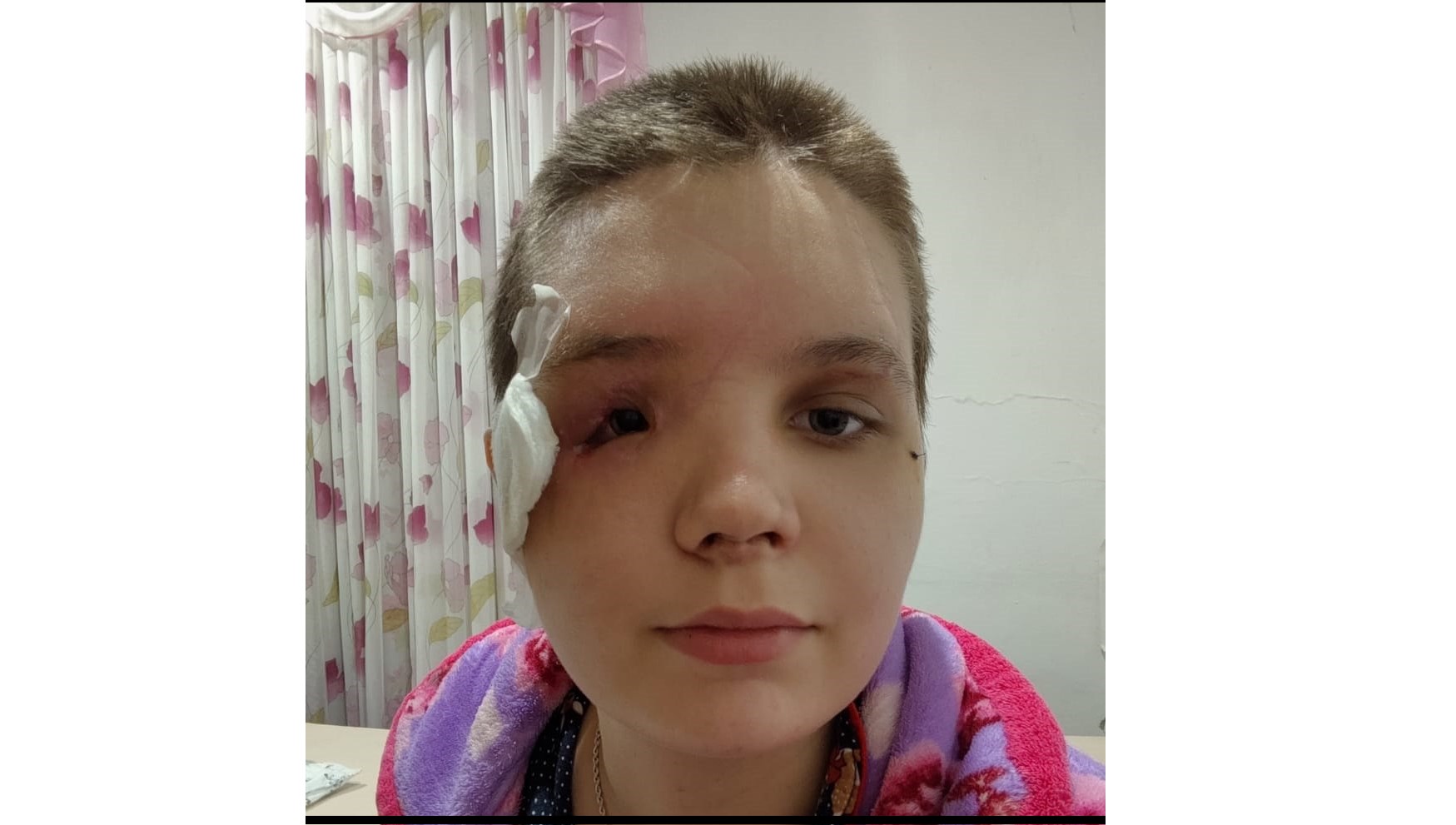приходится проводить с повязкой на глазу, так как из-за травм век левый глаз не закрывается и пересыхает…
