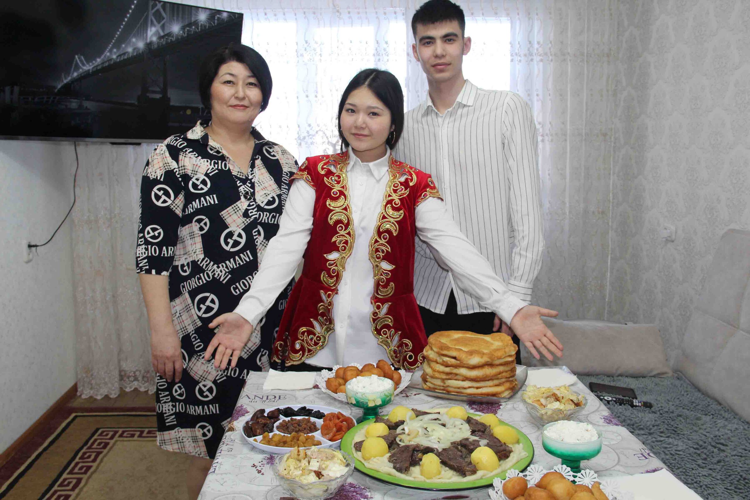 В этот день с самого утра в доме витал аромат праздника. Эту атмосферу с любовью создавала мама Асем. Она всегда просыпалась рано, большое хозяйство, которое держали Мухамбетовы, обязывало к этому. Сделав все дела, Жумакуль, «колдовала» на кухне, чтобы порадовать домочадцев традиционными праздничными блюдами. Ей это удавалось на все 100%:стол на праздник всегда получался богатым. Здесь было все — наурыз-коже, бешбармак, бауырсаки, иримшик, жент и многое другое. Дальше следовали народные гуляния, сопровождающиеся национальными играми, еще Мухамбетовы любили ходить в гости и принимать их у себя. Это время часто вспоминают Ислам и Даяна, дети Асем, которые много времени проводили в Степном. С тех пор все традиции и обычаи, связанные с празднованием Наурыза, семья Бралиных неизменно соблюдает.