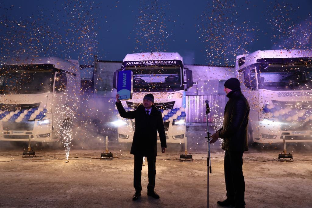 Далее гости на территории Костанайского автоцентра «КАМАЗ» поучаствовали в церемонии передачи первых грузовых автомобилей от ПАО «КАМАЗ» костанайской транспортной компании «AUTOCARGO KZ».
