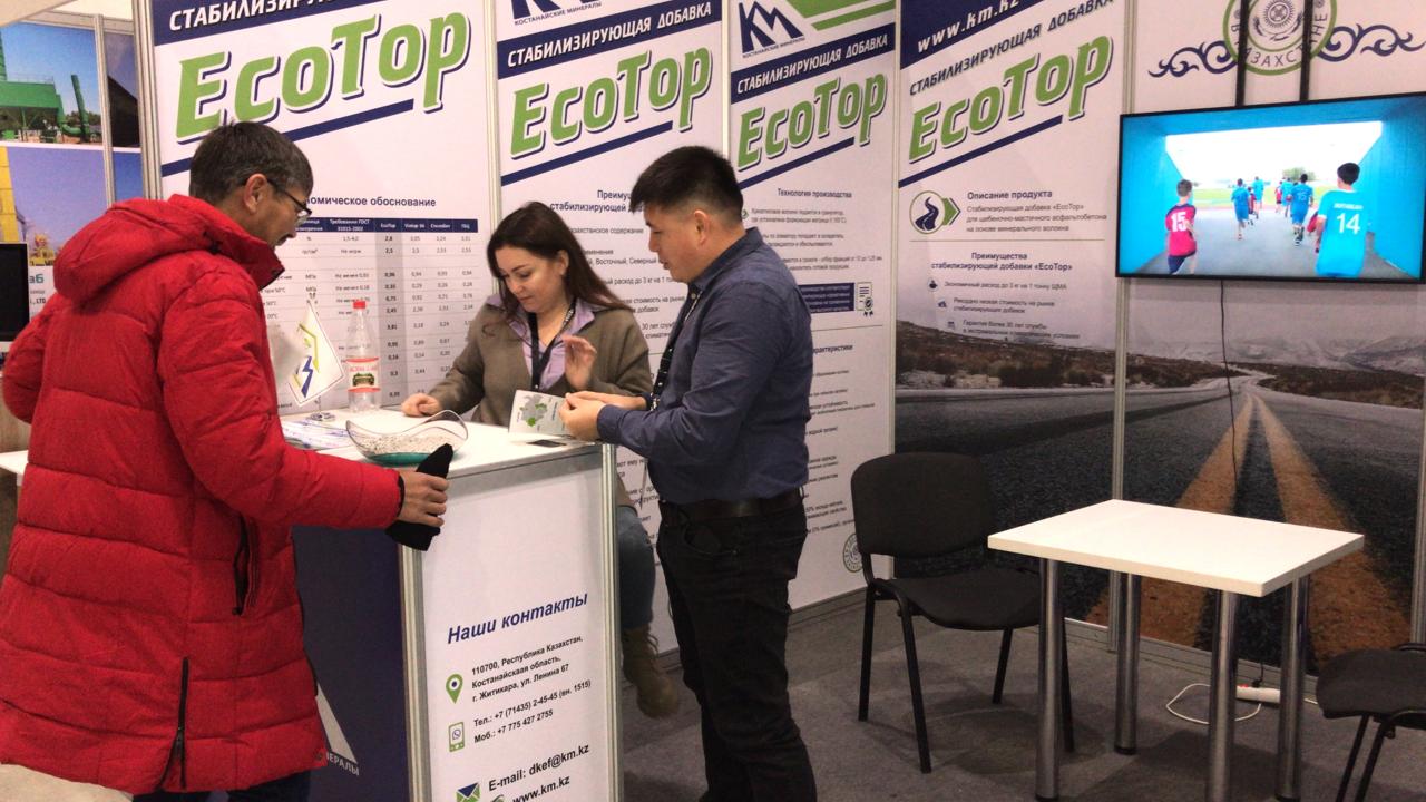 Компания «Костанайские минералы» представила экспозицию своей продукции –стабилизирующую добавку «Eco Top» на основе хризотилового волокна. Природное минеральное волокно обладает особыми характеристиками, незаменимыми в дорожном строительстве. Оно не взаимодействует с водой, имеет высокую термостойкость и коэффициент трения, а, главное, обладает эффектом микроармирования, что препятствует быстрому разрушению дорожного полотна и образованию колеи. Применение добавки в щебеночно-мастичном асфальтобетоне увеличит срок службы автодорог как минимум в три-четыре раза. Применение добавки «Eco Top» весьма экономично. На одну тонну асфальтобетона потребуется не более трех килограммов продукта.