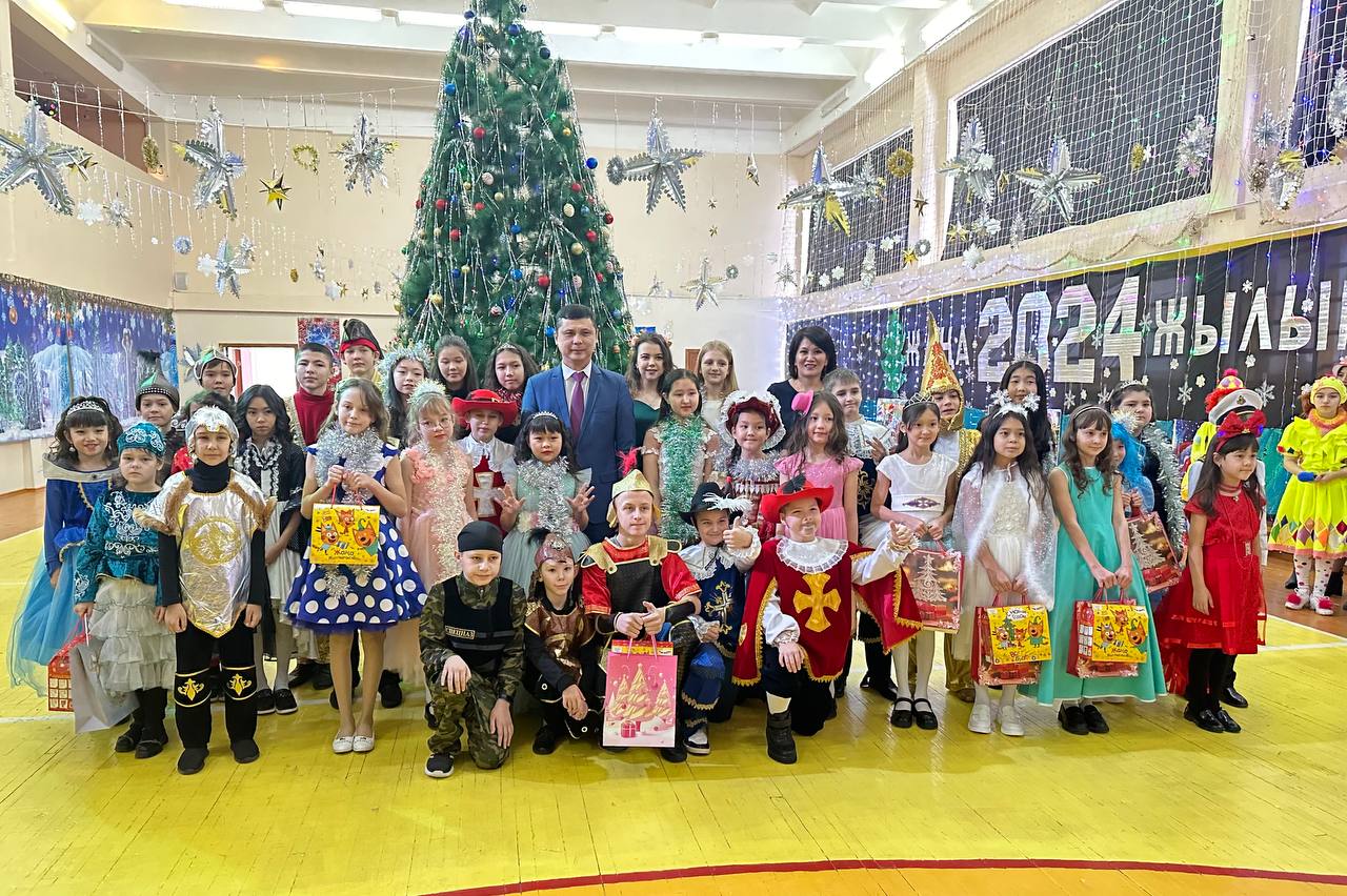 Одним из таких ярких и сказочных праздников стала новогодняя елка для активных и успешных учеников школ района. А прошло мероприятие в самой большой школе Житикары, школе-лицее имени Абая. Здесь житикаринские ребята окунулись в новогоднюю атмосферу. Они пели песни, играли со сказочными героями, водили хороводы с акимом Житикаринского района Нуржаном Утегеновым.